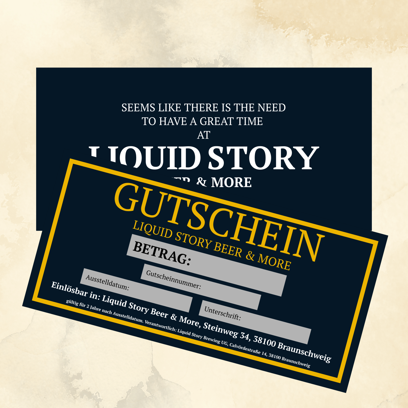 — Aus­schließ­lich ein­lös­bar in unse­rer Bar Liquid Sto­ry Beer & More, Stein­weg 34, 38100 Braunschweig